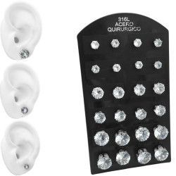 BLISTER medidas 4-6 Y 8mm (4 pares de cada tamaño), CUBIC ZIRCON