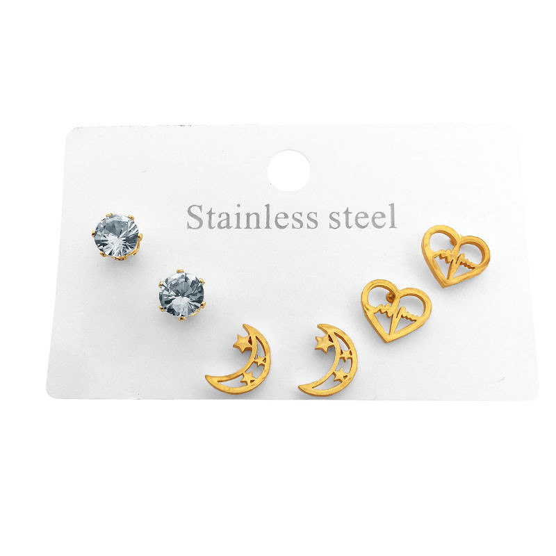 • DORADO PACK X 3 PARES COPITA CRISTAL / LUNA CALADA C/ ESTRELLAS / CORAZON CALADO ARO