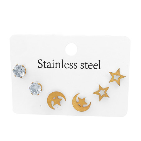 COPITA 6MM, LUNAS Y CORAZON 10MM APROX., CIERRE FRU FRU TODO ACERO QUIRURGICO BAÑADO EN DORADO