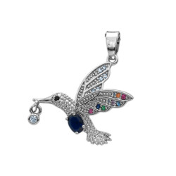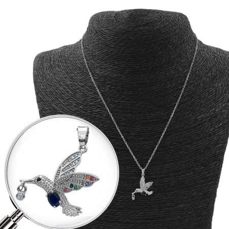AZUL COLIBRI PICAFLOR C/ GOTA DE NECTAR EN CUBIC Y MICROPAVE DE COLORES 45+5CM COLLAR