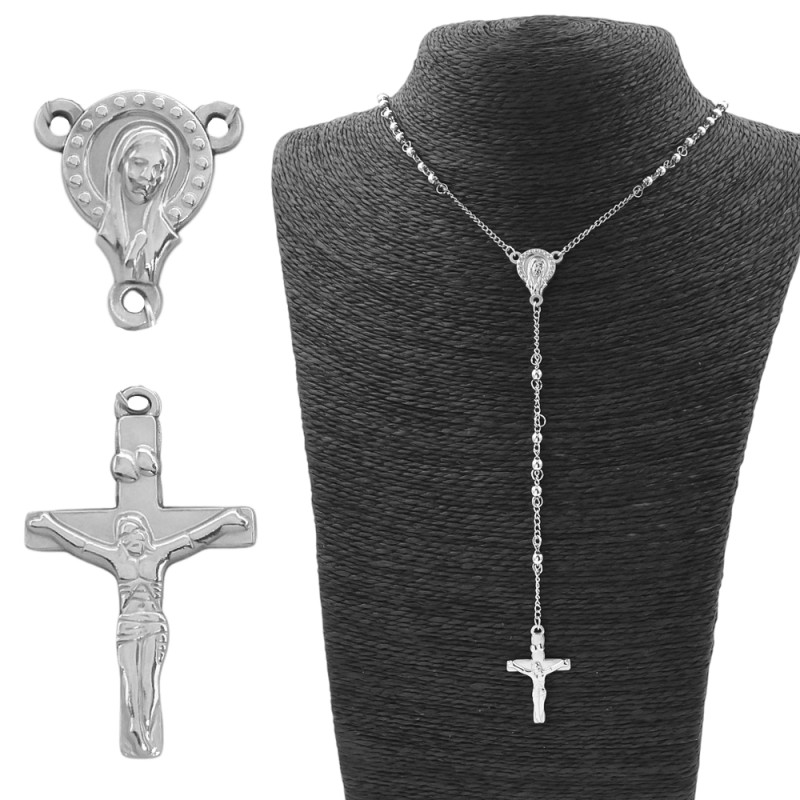 CRUZ 20*30MM, CENTRO DE ROSARIO 12MM DE UNA SOLA CARA, Confeccionado en Acero Quirúrgico